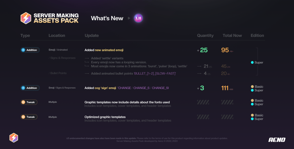 - The paid edition, titled 'Super', also includes assets for those who want to make their server the best it can be, such as a multitude of role icons, the thesaurus, and an impressive collection of bullet points and sub-entries available in multiple shapes and colors.